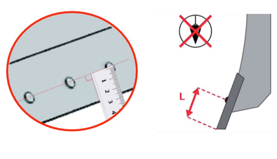 Measure flat against the blade, the distance from the center of the cutting edge bolts to the tip of the blade. Do not measure plumb.