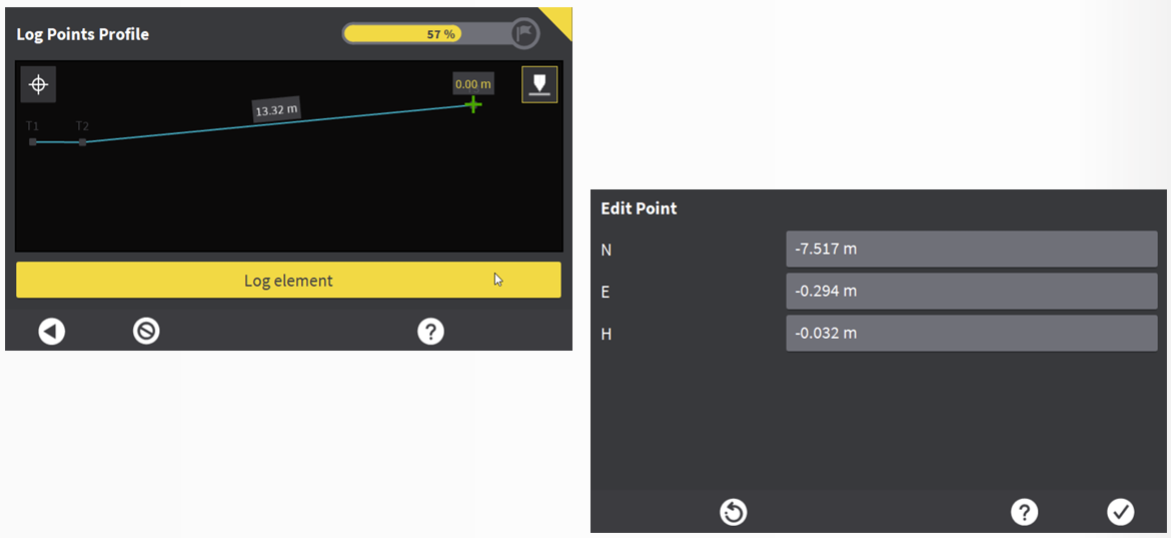 The following page will show a profile view of the alignment. If you press and hold on any individual point, you can manually edit the point Northing, Easting or Elevation. Proceed to next step by hitting the arrow after selecting the line.