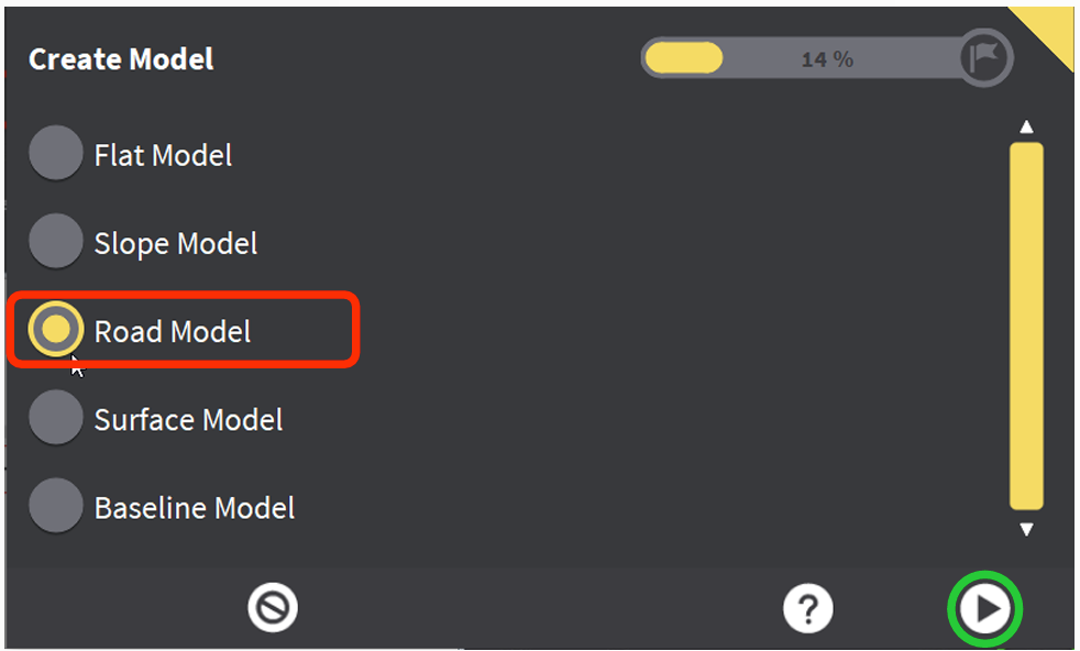 Provide a Name for the Road Model. Hit the Flag to proceed.